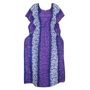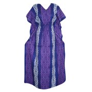 Women Caftan Blue Batik Print Cotton Beach Cover up Kimono Dress
