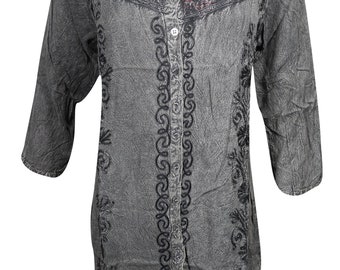 Boho Meditation YogA kUNDALINI Holiday Fun Resort Wear Womens Long Tunic Dress Floral Hand Embroidered Beautiful Cover Up Kurti S/M