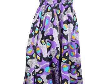 Boho Sundress Printed Purple Handkerchief Hem Recycled Sari Holiday Beach Dress S/M