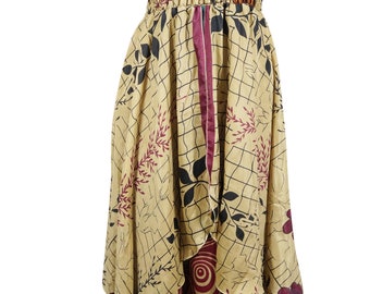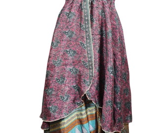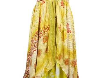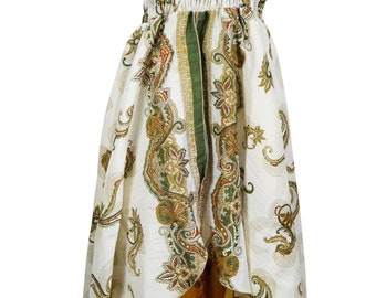 Women GYPSY SKIRT, Beach Skirts Strapless Dress, Two Layer Skirt, Green White Printed Boho Dresses, Recycled Sari Skirt S/M