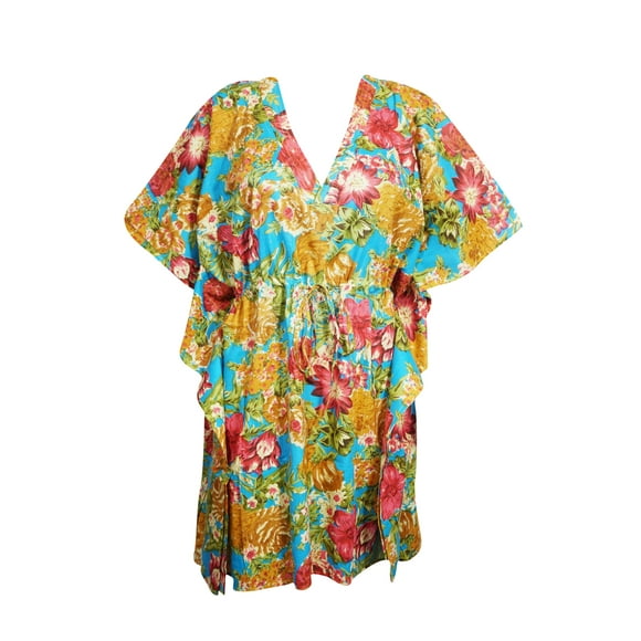 Mogul Women Short Caftan Dress Floral Print Kimono Sleeves Beach Bikini Cover Up Dresses 3XL