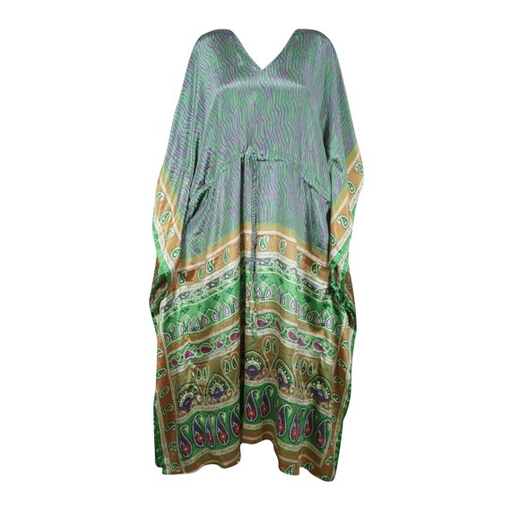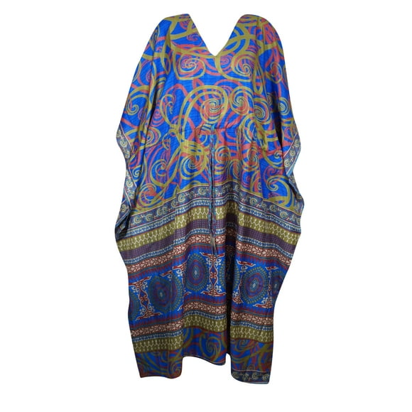 Mogul Women Double Shade CAFTAN Recycle Sari Resort Wear Kaftan Dresses 2XL